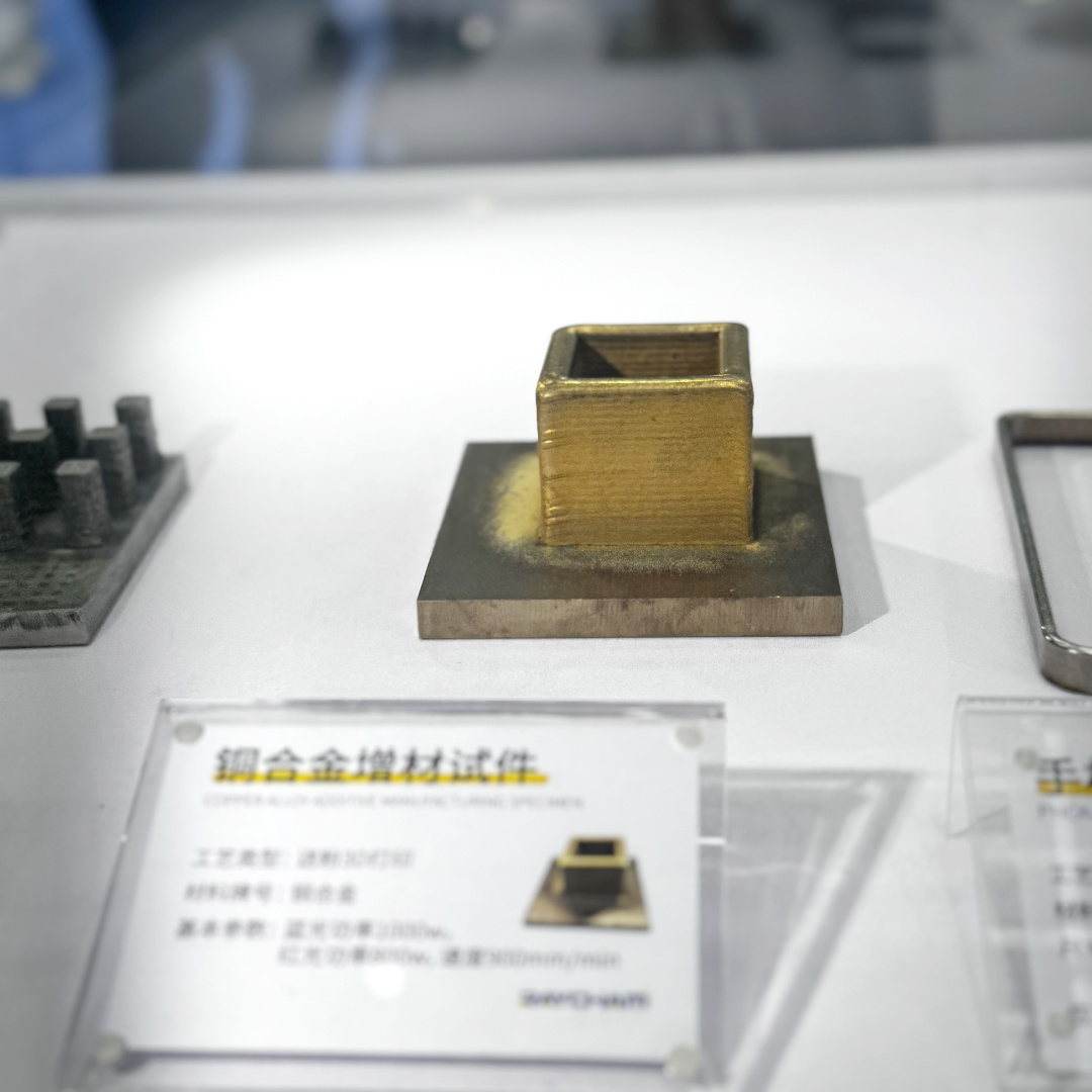 在技術成果展示區,中科煜宸帶來的增減材一體化復合制造復雜形狀構件、多材料3D打印構件及3C半導體等行業脆硬性材料水導激光加工等應用案例,直觀展現了金屬增材制造技術和水導激光加工技術在不同行業的實踐價值。